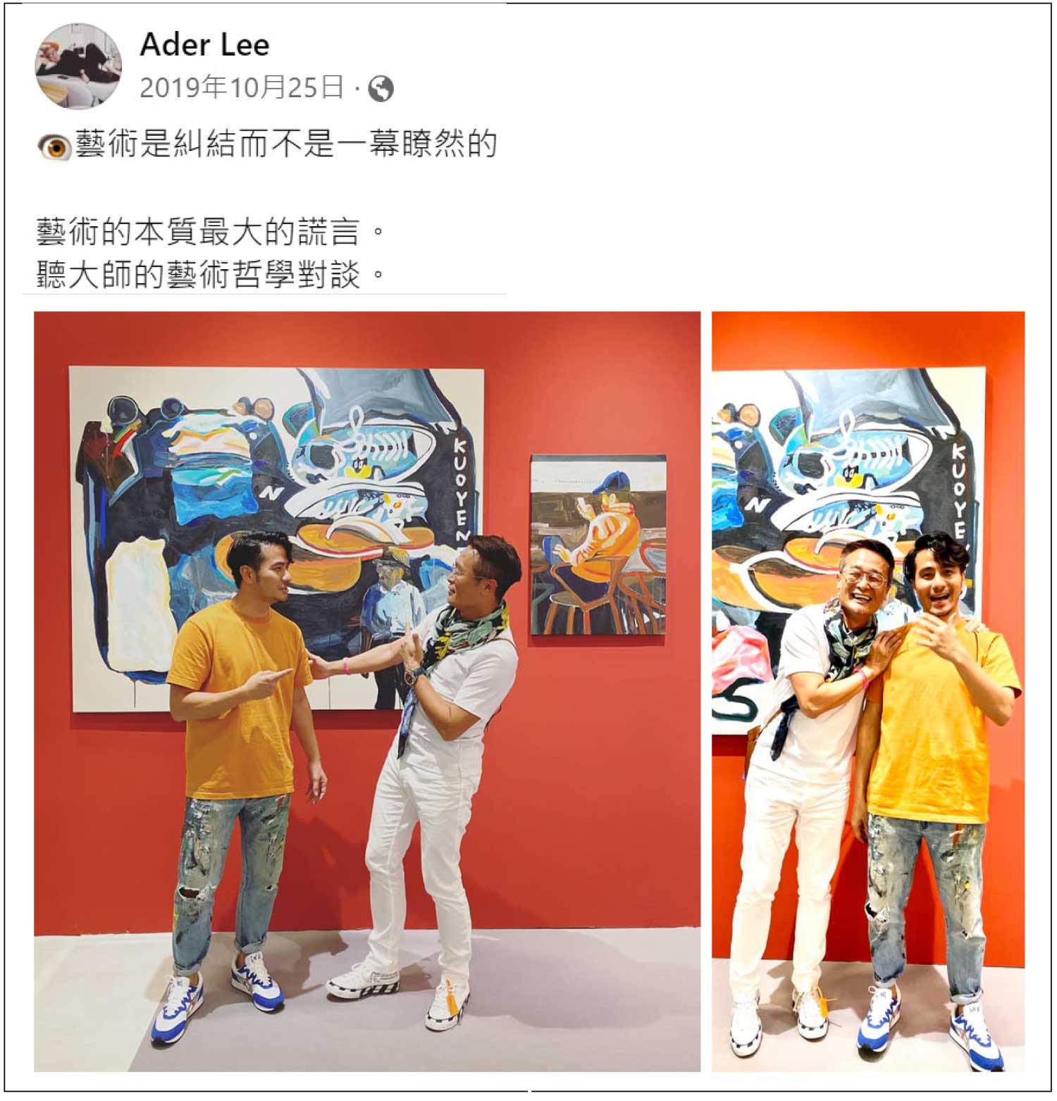 Ader說他的腰這幾天剛好受傷了,但既然答應我,他就一定會從桃園來台北的展覽會場看我,重點他還跟我進行一個多小時的對談,內容幾乎都在勉勵與鼓勵我!