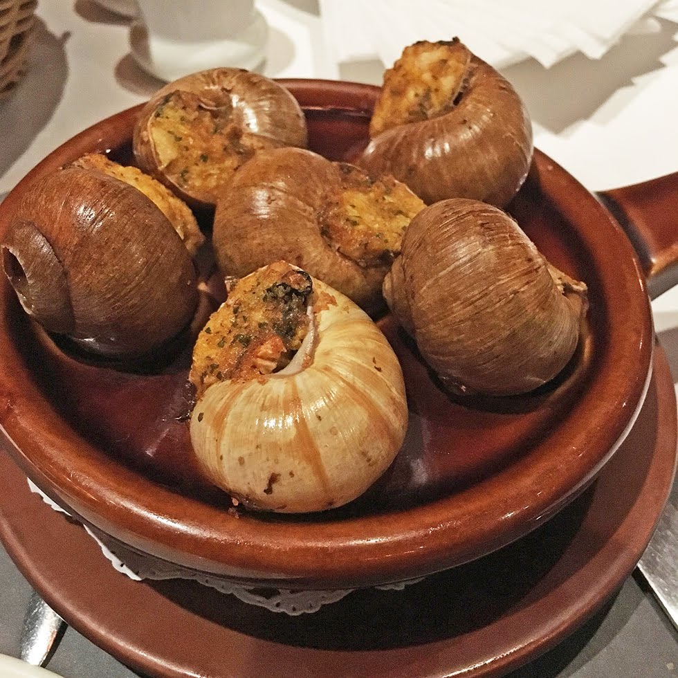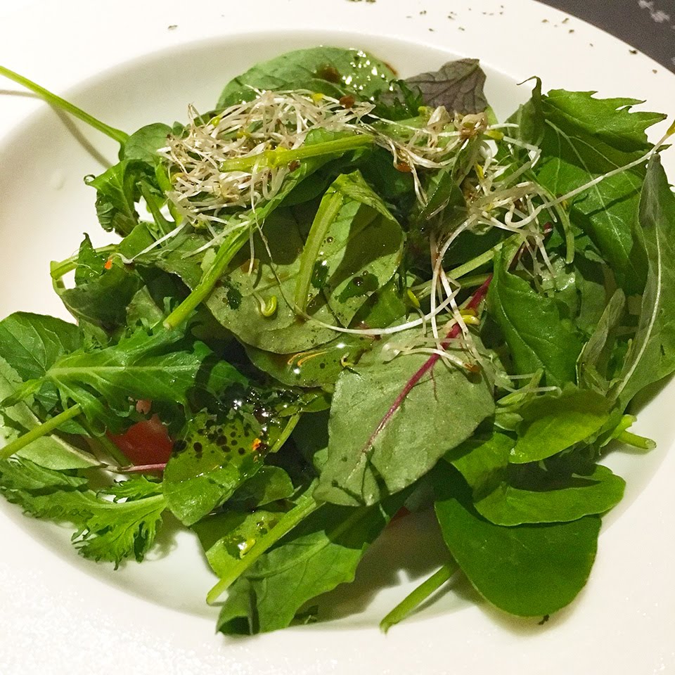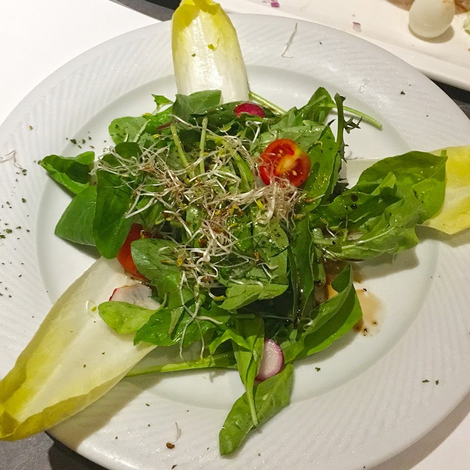 上圖的油醋生菜好吃!! 這道前菜是由紅酸模、小松葉、 京水、芝麻葉、嫩田菜所組合而成的!!在外面一般比較吃不到,我一吃便愛上了這盤生菜!!!而下圖的烤田螺也很美味!早知道就不要分給坐我隔壁的吃了 (ˋ_ˊ)