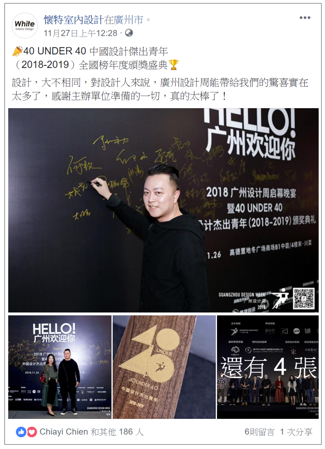 不得了的事情是他在2018年11月更是獲得廣州設計周之《40 Under 40》台灣設計傑出青年代表之一!!!!