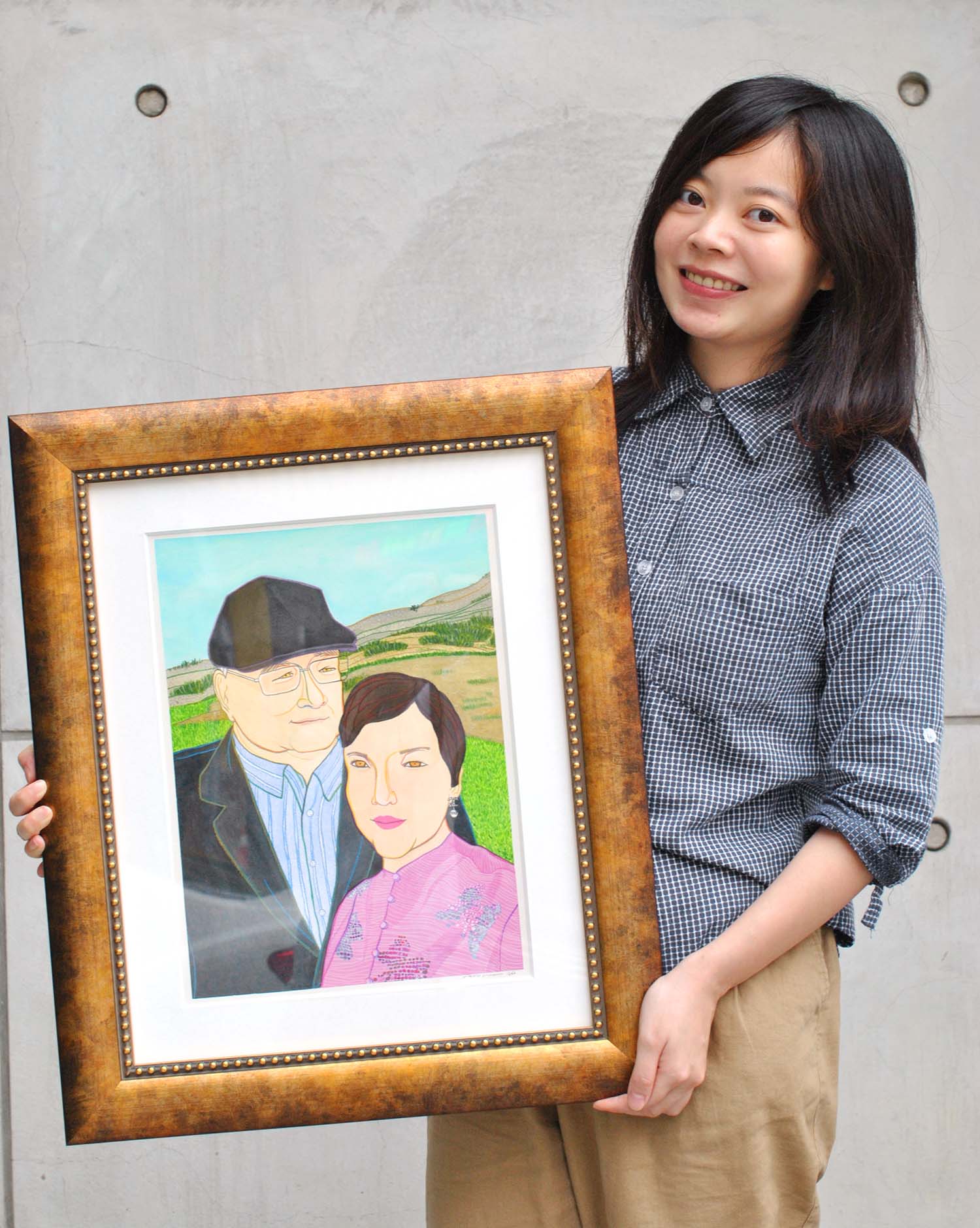 客戶Lily對於這次案件的訴求第一是繪製爸媽的肖像畫當作母親節禮物,而第二點則是背景須繪製爸媽曾經去過的景點,最後希望畫面是簡單大方的風格!