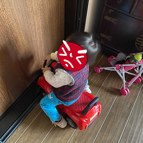 幸好他在車庫玩沒多久就被一旁的澆花桶吸引住,所以當他離開滑行車後不久,我逮到機會直接把人抱走,就這樣順利地與我的親戚見面。