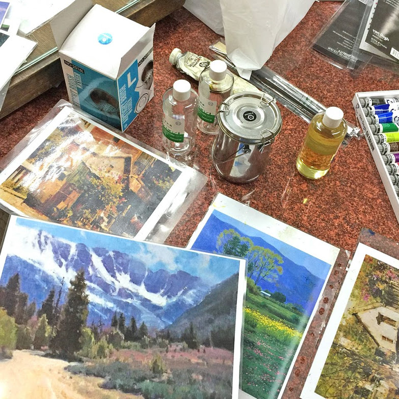 一進教室便看見郭進祺老師,他跟網路照片一樣和藹可親! 郭進祺老師在簡單介紹畫室的一些事宜後,便讓我們兩個選擇一張圖片來進行臨摹!