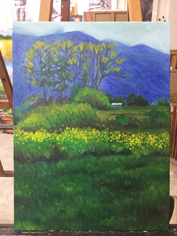 如上圖,這次我把草叢、草地又重新畫過,也讓這次練習的作品進度到達60% ? 郭進祺老師說我下次來的時候就可以畫上那些零碎的小紅花了?? 這次我在畫畫的時候,身旁還多了一位第一次上課的同學來觀看,她其實是突然跑來我旁邊的,她說她在後面畫畫時看到我的作品,她覺得很好看! 沒想到這位貴婦阿姨 (貌似40初) 眼光這麼好啊 ???