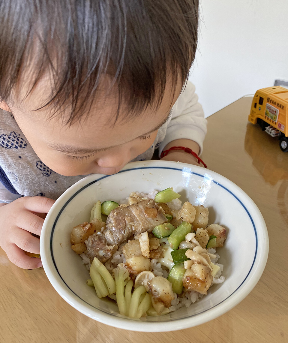 我的作法是多了蒜頭以及更多的蔬菜下去拌炒,增加餐點的營養與豐富性?! 這道料理的魅力是連我的孩子他光聞味道就迫不及待地想趕快吃午餐了!!