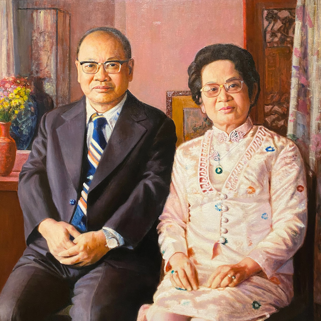 看完紀錄片的我又走到最一開始的展區,特別再次欣賞由畫家李梅樹所繪製的〈許鴻源夫婦像〉作品。