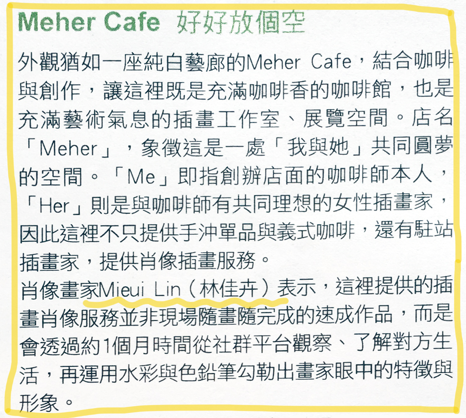 感謝自由時報的採訪! 記得當時收到記者的訪談邀請時,我們感到非常振奮,因為我與先生共同創業【MEHER CAFE】兩年多,第一次受到媒體的青睞阿!!!! ?