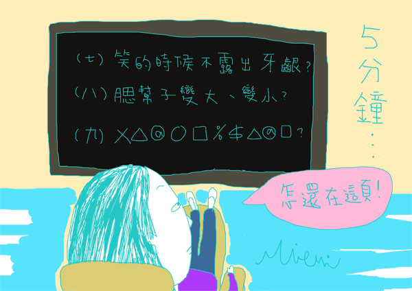 總之我終於可以從第七單元開始看。當我看完後,鄭勝榮院長便與我討論矯正牙齒的未來規劃與流程,經過我的允許後,院長便用很簡潔且愉快地心情說:「那…..,我們開始拔牙吧!」聽完這句話的當下,我覺得院長也太殘忍了,我還沒有心理準備耶!!!