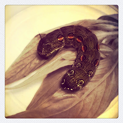 今天下一整天的大雨,我無法到公司後花園摘取牠愛吃的食物,此刻的我內心非常著急,但沒想到「貼心」的牠選擇在今日變成蛹! 而牠開始忙著把身體的水脫乾,然後就像侍者般原地靜待。