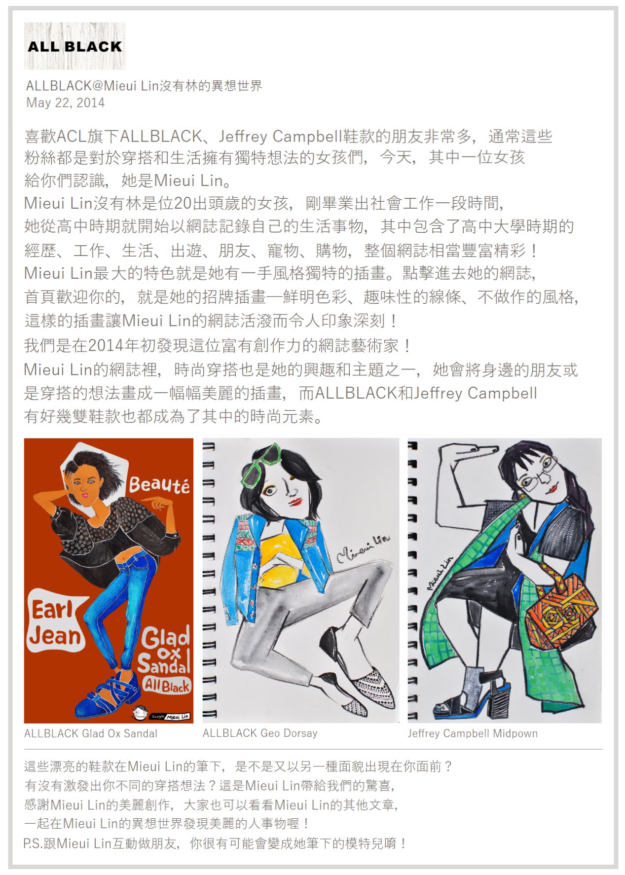 【媒體報導】台灣鞋業品牌-銷售歐美國家-【ALL BLACK】Mieui Liu 介紹文章