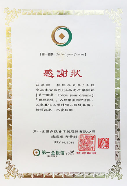 這次競賽中我獲得了個人組的優異獎! 非常謝謝主辦單位《第一金證券投資信託股份有限公司》總經理邱華創給予肯定!